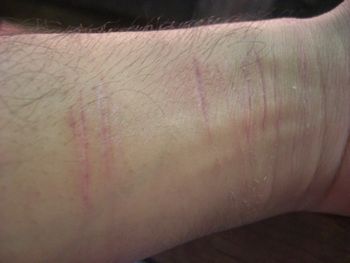 まぁ、自分の体で痛い所はほぼ無いのだが、自傷跡が少しだけ熱い。